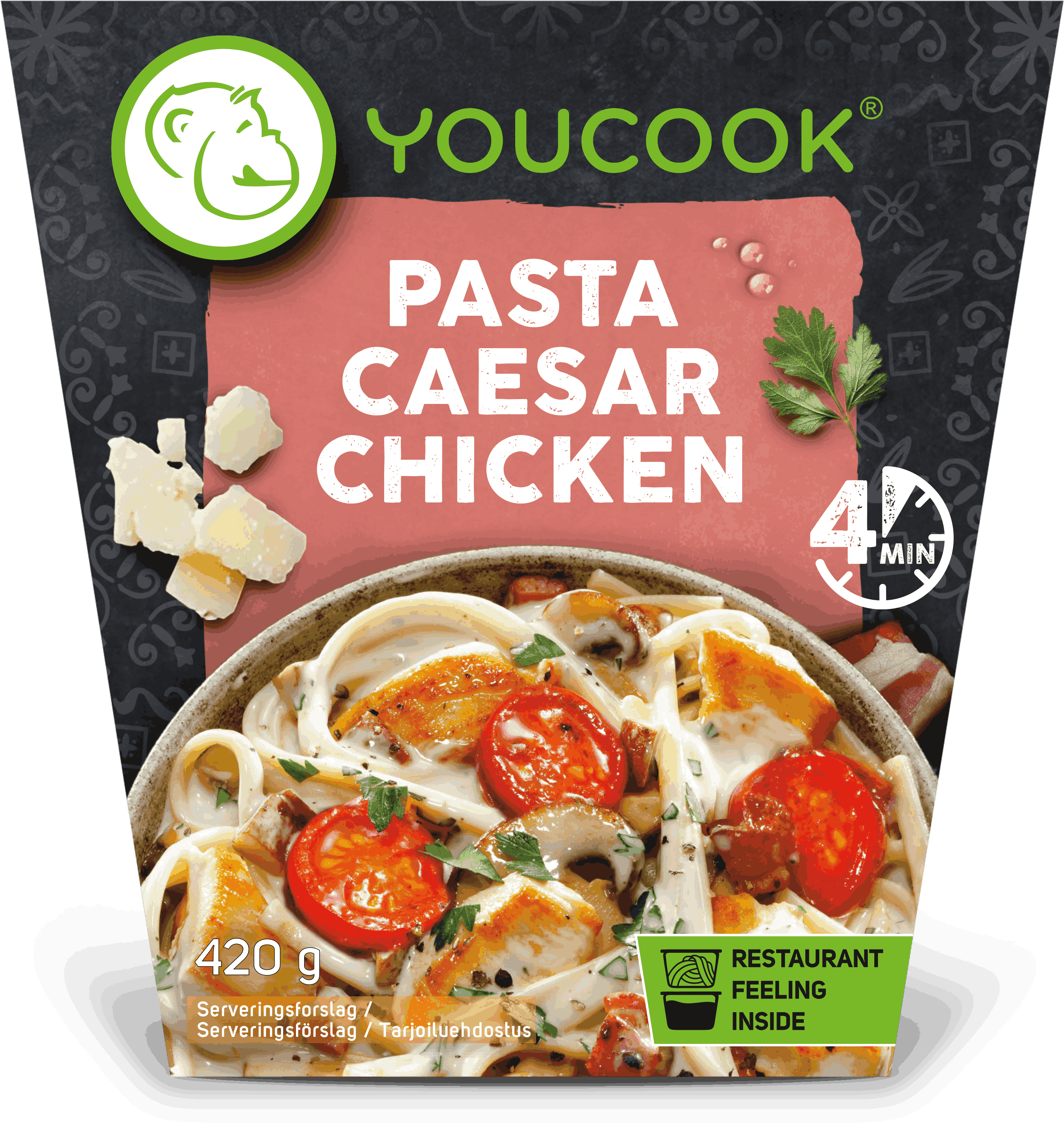 Ingredients: cooked pasta 43% (water, durum WHEATMEAL, rapeseed oil), water, CREAM 9%, marinated, cooked chicken breast fillet 9% (chicken breast fillet, starch, salt, dextrose, contains soya oil and/or rapeseed oil), CRÈME FRAÎCHE, tomatoes, common mushrooms, grated Grana Padano CHEESE (contains EGG), onions, rapeseed oil, smoked pork belly (pork belly, salt, stabilizer: sodium nitrite; smoke), modified starch, salt, herbs, spices (contains MUSTARD), poultry broth (turkey- and chicken broth, salt), worcester sauce (water, sugar, BARLEY malt extract, tomato concentrate, wine vinegar, salt, seasoning, wine, spice extract), smoked onion powder (onions, smoke), lemon juice concentrate, distilled vinegar. Enthalten: Glutenhaltiges Getreide, Eier, Milch, Senf Kann Spuren enthalten von: Sojabohnen, Sellerie Geschmacksverstärker The best before date indicated on the sales packaging can only be guaranteed if the product is stored and transported continuously at temperatures between +2°C and +7°C. So schnell, so lecker. Ready in 4 Minuten. Pierce the top of both bowls multiple times and heat in the microwave (700 watts) for about 4 minutes. Open both bowls and place the side and the sauce with meat and vegetables in a pan with a dash of oil. Heat over a medium heat, stirring occasionally. Then just dish up on your favourite plate and enjoy. Please note: cooking times may vary depending on the appliance. Extra tasty and just the way you like it – with fresh ingredients straight from the supermarket. PRODUCT DETAILS
