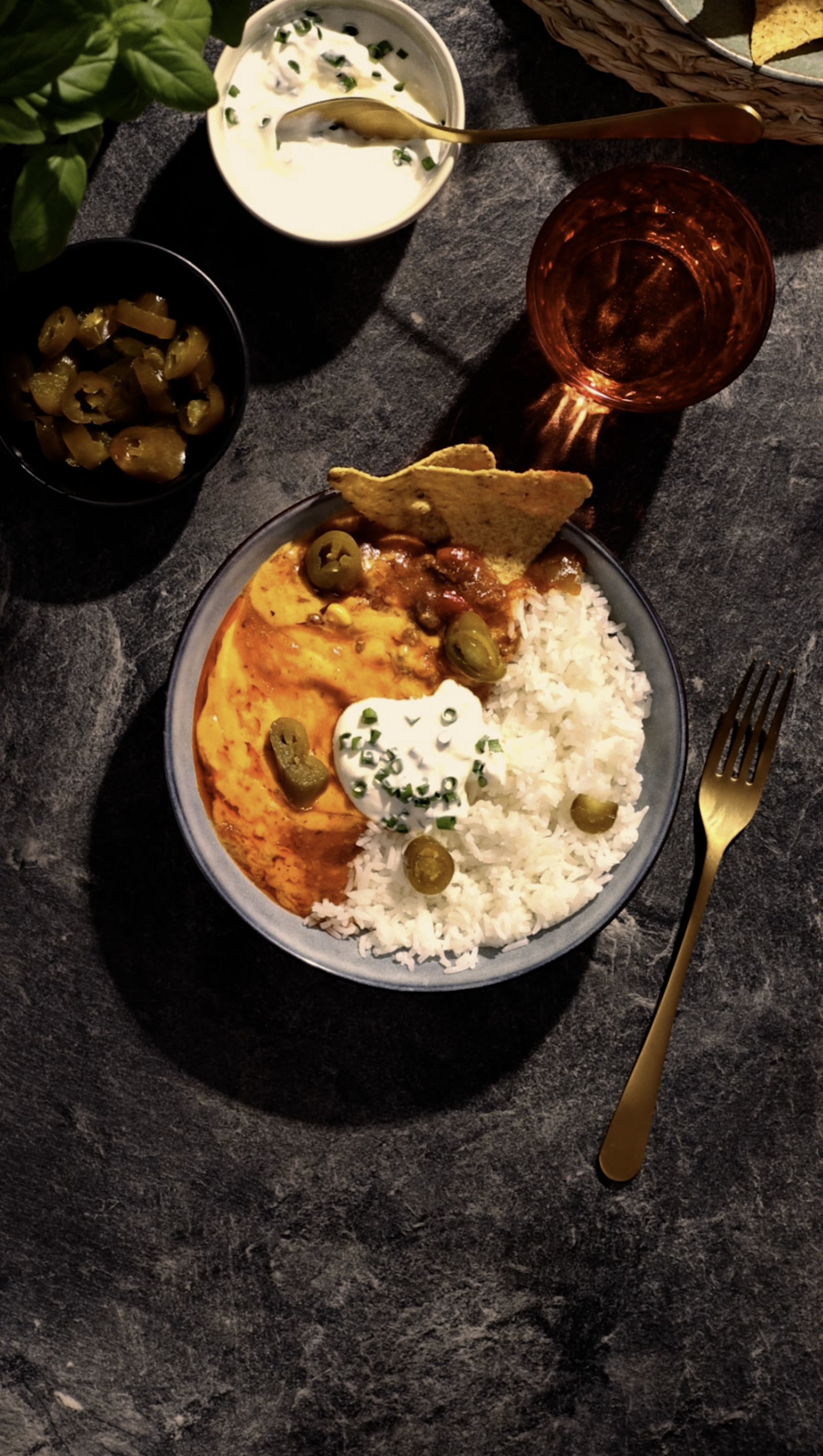 Jetzt wird es scharf! 100% Rinderhackfleisch, passendes Gemüse machen dieses Tex-Mex-Gericht zur echten Seelennahrung. Genieße unsere Chili con Carne zusammen mit dem Käse-Topping im Nacho-Stil.
