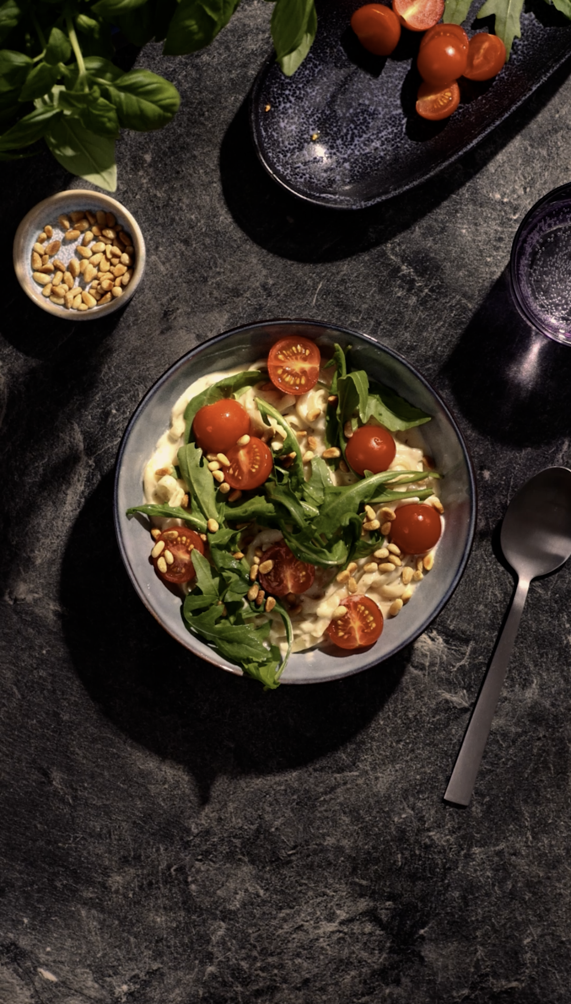 Zutaten: 47 % gegarte Nudeln (Wasser, HARTWEIZENGRIESS, Rapsöl), 17 % Käse [Mascarpone FRISCHKÄSE, geriebener Käse (EDAMER, GOUDA, Stärke), geriebener Grana Padano KÄSE (enthält EI), Blauschimmelkäsepulver (KÄSEPULVER, Salz)], Wasser, SAHNE, Weißwein, Rapsöl, Gewürze, Balsamessig (Weinessig, Traubenmostkonzentrat), Salz, modifizierte Stärke, Kräuter, Schmelzsalz: Natriumcitrat; Zucker, Zitronensaftkonzentrat, Verdickungsmittel: Xanthan. Enthalten: Glutenhaltiges Getreide, Eier, Milch Kann Spuren enthalten von: Sojabohnen, Sellerie Geschmacksverstärker Das auf der Verkaufsverpackung angegebene Mindesthaltbarkeitsdatum kann nur bei einer ununterbrochenen Lagerung und Transport von +2°C bis +7°C eingehalten werden. So schnell, so lecker. Ready in 4 Minuten. Beide Schälchen oben mehrfach einstechen und in der Mikrowelle (700 Watt) für ca. 4 Min. erwärmen. Beide Schälchen öffnen und Pasta sowie Sauce mit etwas Öl in Pfanne oder Topf geben. Bei mittlerer Hitze erwärmen und ab und zu umrühren. Danach nur noch auf deinem Lieblingsteller anrichten und genießen. Achtung: Die Kochzeit kann je nach Gerät variieren. Extra gut und ganz nach deinem Geschmack – mit frischen Zutaten direkt aus dem Markt. PRODUKTDETAILS